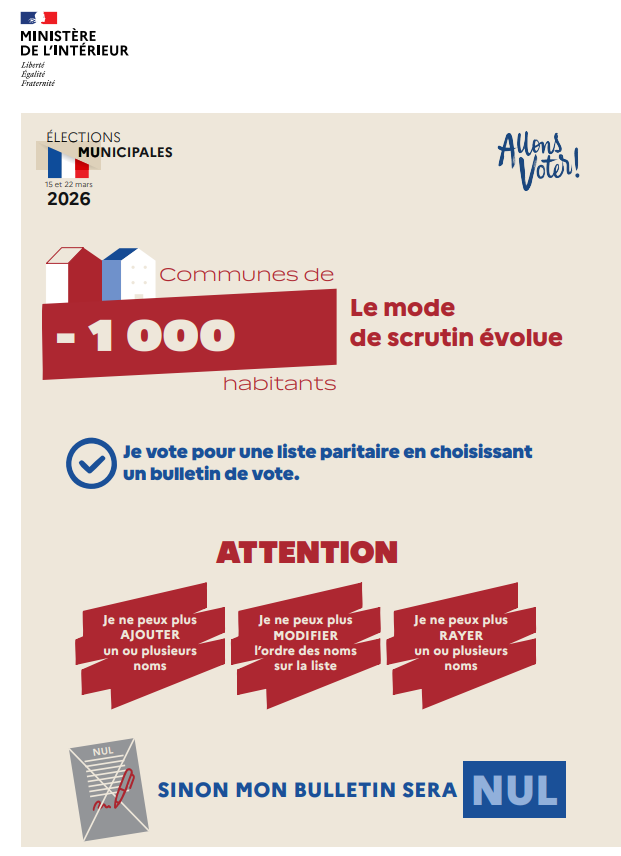 À compter des élections municipales de mars 2026, le mode de scrutin évolue dans les communes de moins de 1 000 habitants.